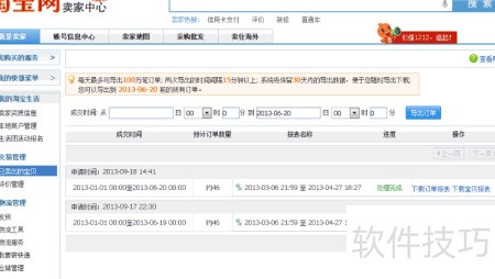 7、 首先登录淘宝后台,找到历史订单选项,点击下载按钮即可获取订单数据。