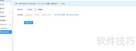 9、 关于批量上传手机号补全信息的方法:进入后,选择下的功能。该功能提供与两种方式,便于高效完成信息补充。