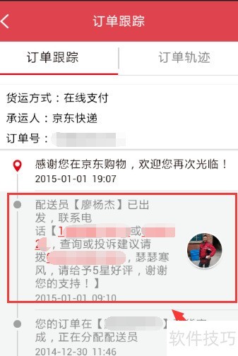 8、 可对京东配送员进行评价,涵盖商品包装、送货服务及配送人员服务的满意程度。