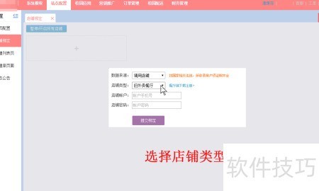 1、 与商家协商合作事宜,商家完成商户账号注册后,站长登录后台管理系统,进入下的页面,点击新建并选择店铺类型,提交绑定申请(见图1、图2)。完成上述操作后,界面将显示3所示状态。