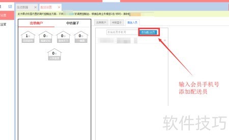 4、 在后台管理系统中,选择校园配送设置,输入会员手机号以添加配送员。