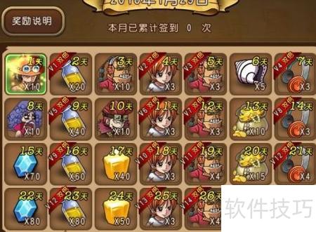 2、 点击签到后将弹出提示框,选择第一天进行打卡,因是首次签到。每日签到可领取相应天数的奖励礼品,具体如下所示。