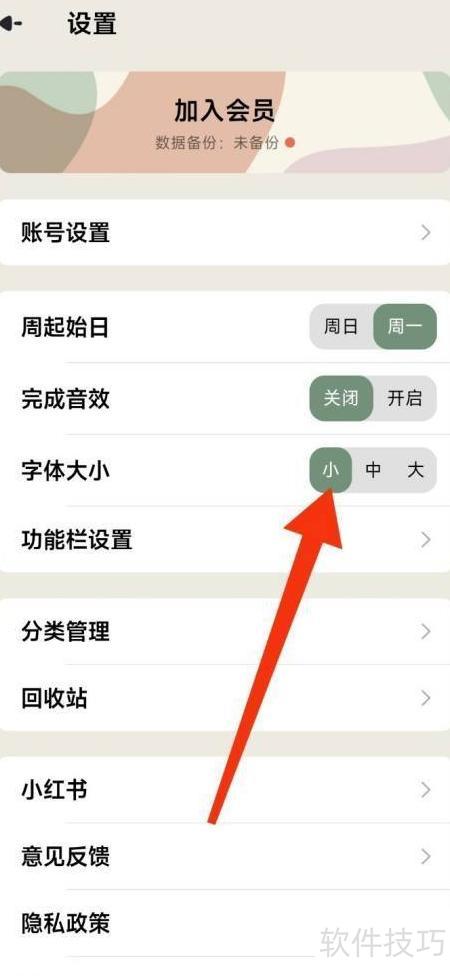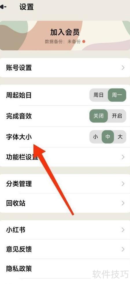 2、 进入设置后,选择调整字体大小选项。