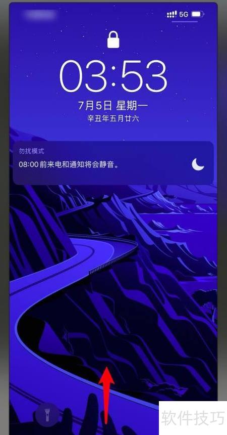 1、 左下角手电筒呈灰色,此时上滑操作适用于苹果12。