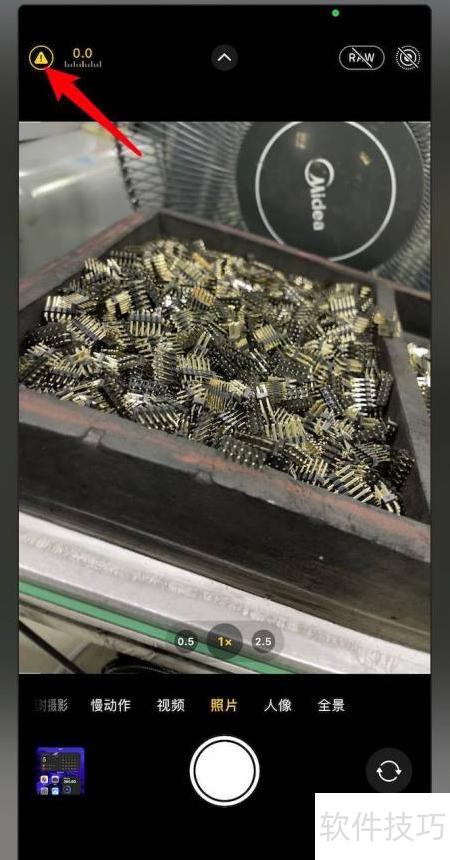 3、 点击左上角的黄色感叹号,那是闪光灯图标,若能开启,手机手电筒功能也可使用。