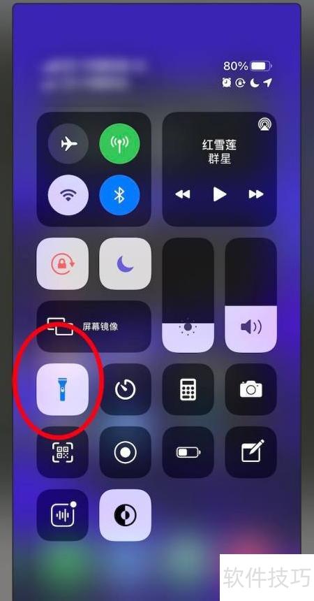 7、 手电筒图标已恢复彩色,可正常使用。因手机过热导致变灰,通过此方法即可解决苹果12手电筒无法开启的问题。