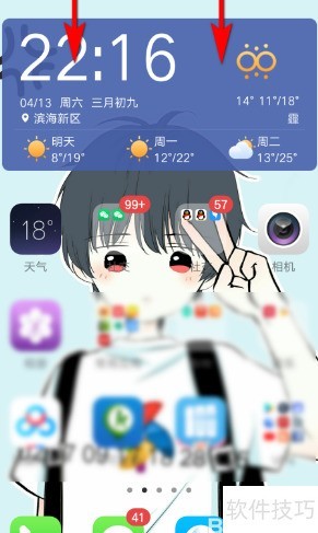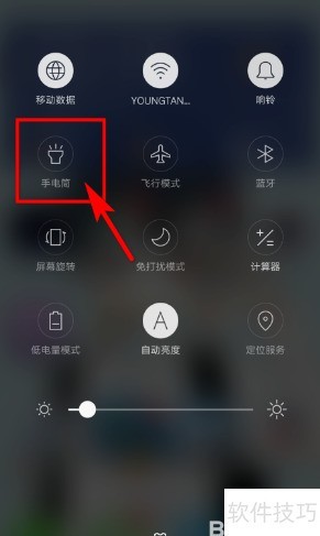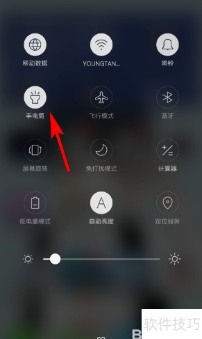 2、 从手机屏幕顶部向下滑动,即可打开状态栏,其中包含手电筒按钮,具体所示。