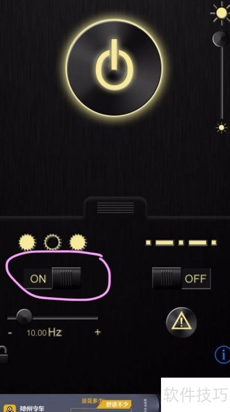 6、 向右滑动左侧图标,可调节手电筒闪烁快慢。