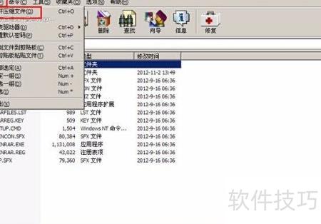 3、 在WinRar界面中,点击文件菜单,选择打开压缩文件即可。