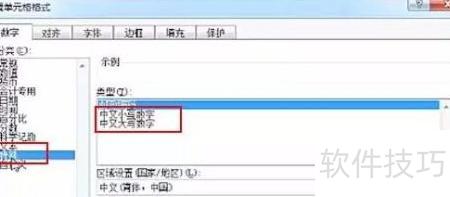 2、 选中目标单元格,右键选择设置单元格格式,在数字分类中点击特殊,然后选取中文大写数字,最后确认即可完成设置。