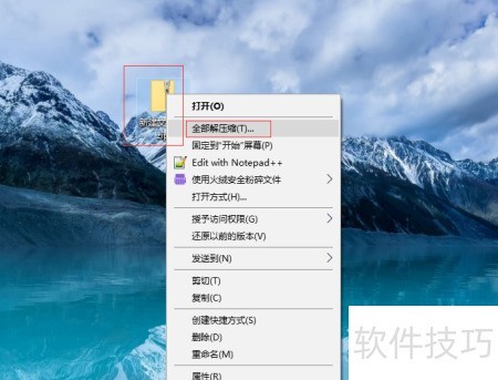 1、 右键点击系统中的zip压缩包,选择全部解压缩即可。
