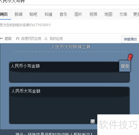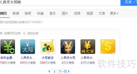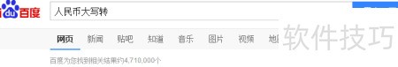1、 打开百度,搜索人民币大写转换即可完成操作。