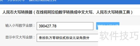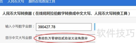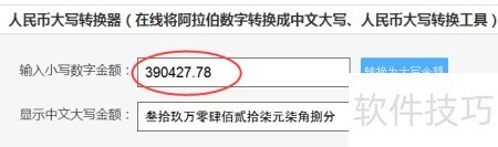 4、 在显示中文大写金额框内即可呈现转换后的中文大写金额。