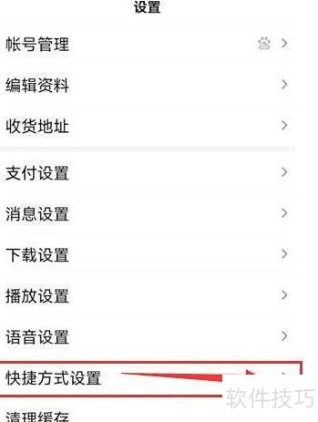 2、 进入设置页面,选择快捷方式设置选项即可。