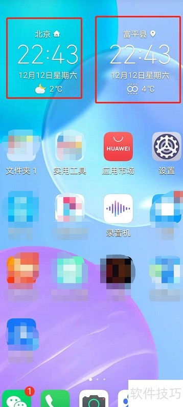 4、 返回桌面后,可见两个地区天气预报并列显示。