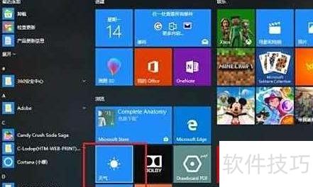 1、 在Windows 10系统中,点击左下角开始菜单,打开天气应用程序。