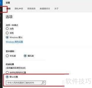 3、 进入天气设置,于启动位置下方的默认栏输入所在城市名称即可。