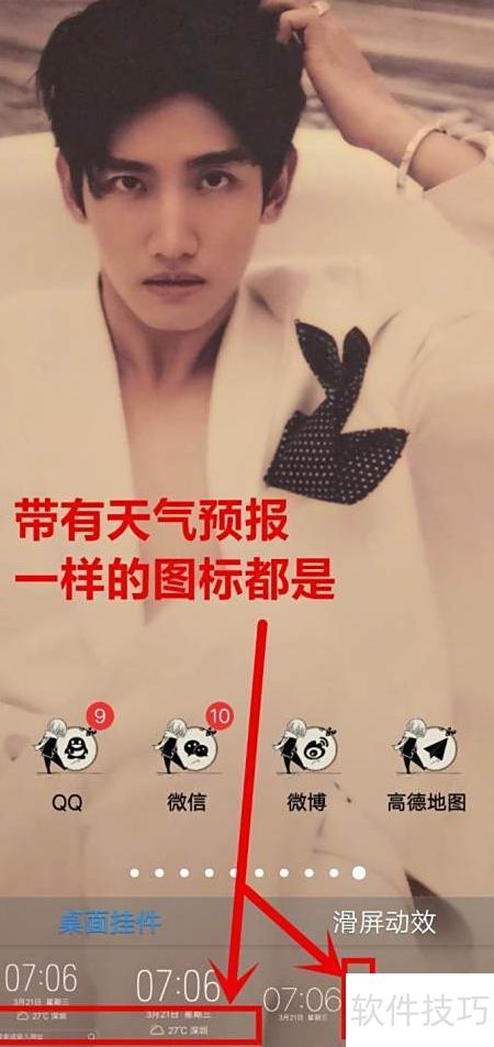9、 长按天气图标三秒,出现叉号后点击删除。