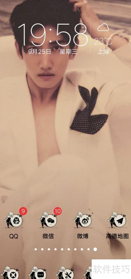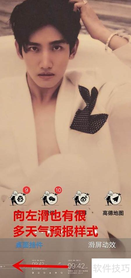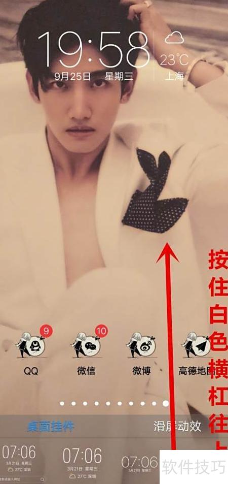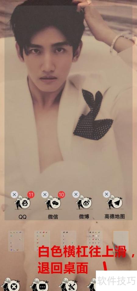 6、 选择完毕后,长按手机右下角最右侧的白色横条并向上滑动,即可完成返回主屏的设置。