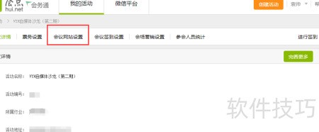 3、 进入活动详情页,于导航栏点击会议网站设置即可。