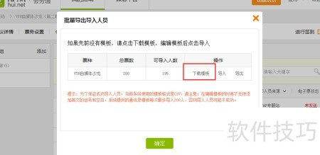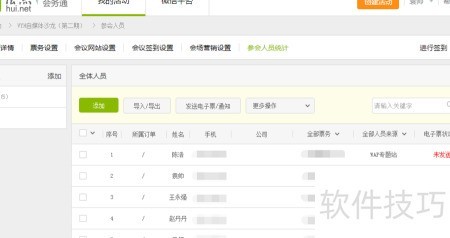 6、 进入参会人员统计页面,点击导入导出按钮,将模板下载到本地。