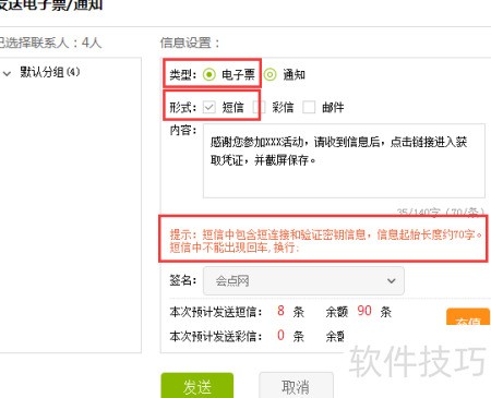 9、 编辑短信时需注意内容包含短链接与验证码,信息初始长度约为70字,确保内容连贯无回车,准确传递所需信息。