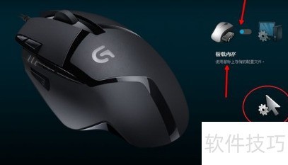 5、 启动罗技游戏软件,进入首页后找到红色箭头指示的切换开关,将其调至板载内存模式。此时所有设置将直接保存在鼠标内部,而非电脑中,确保配置随鼠标携带使用。