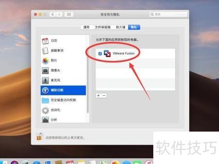 10、 在允许应用控制电脑的选项中,选中VMware Fusion即可。