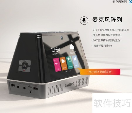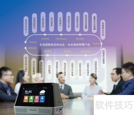 飞利浦会务通VTR9800是一款智能化会议管理设备,融合远程视频会议、商务翻译、文件管理、电子白板演示、语音转文字、多媒体扩音、智能录音、网络电视、手机快速投屏及电话会议十大功能于一体。产品以全面、稳定、智能、高效为核心优势,覆盖各类会议场景需求,可替代传统会议中使用的白板、纸质资料、录音笔、电视机、扩音设备、翻译机等多种硬件。通过高度集成的设计,简化会议流程,提升协作效率,优化参会体验,助力现代企业实现高效、智能的会议模式,是数字化办公环境中的理想选择。