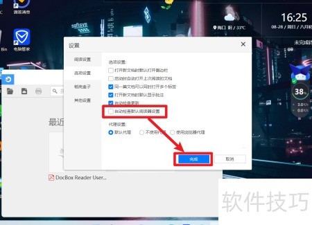3、 关闭自动检测默认阅读器后,点击完成即可。
