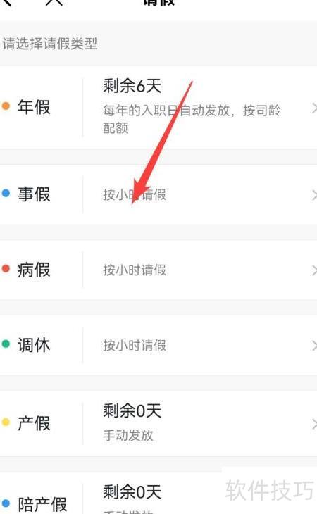 3、 选择请假选项后,再选具体的请假类型。