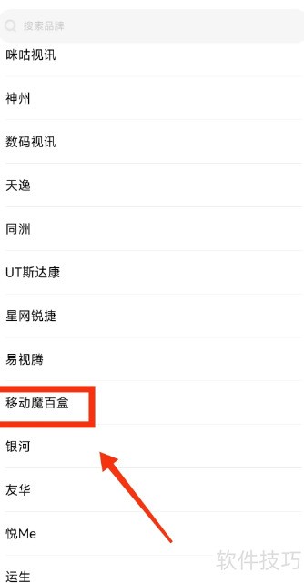 2、 选择移动魔百盒品牌并进入IPTV平台