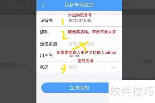 8、 输入设备编号和昵称等信息,确认无误后点击立即添加,即可完成网络监控nvsipid的配置。