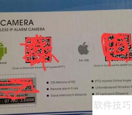 2、 连接摄像头电源,手机扫描包装盒上的二维码下载对应APP即可完成安装。