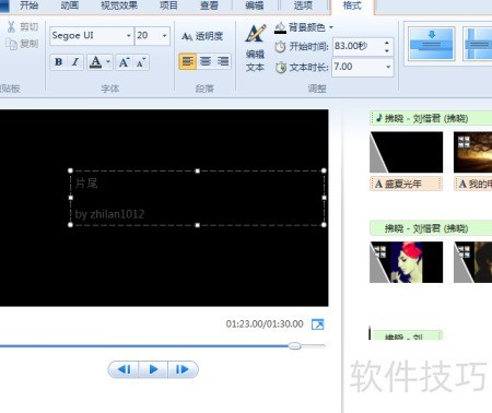 4、 点击片头片尾,设置文字内容与格式,所示(默认显示我的电影)。