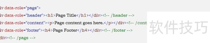13、 页面中的内容均被包含在div标签内,并通过添加data-role=page属性进行标识,从而使jQuery Mobile能够识别并处理这些特定区域的内容。