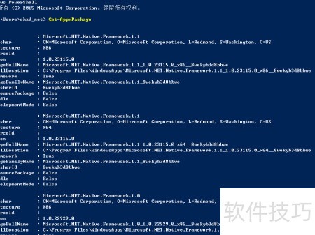 2、 在打开的 Windows PowerShell 窗口中,键入命令 Get-AppxPackage 并按回车执行。