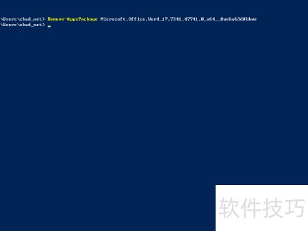 5、 在系统中执行命令 Remove-AppxPackage Microsoft.Office.Word_17.7341.47741.0_x64__8wekyb3d8bbwe,即可将 Word Mobile 应用程序从设备中彻底移除。该操作适用于需要卸载预装移动版 Word 的场景,通过命令行方式实现快速清除,无需手动干预,确保软件完全删除且不留残留文件。