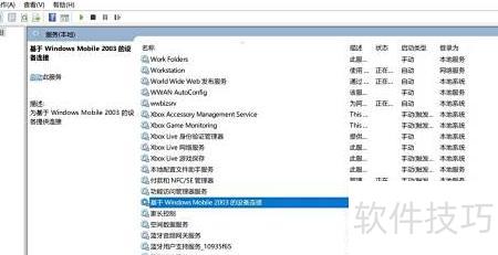 5、 在服务界面中查找适用于Windows Mobile 2003设备的连接设置选项。