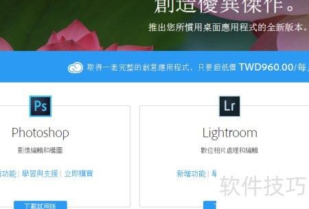 3、 现在可以点击下载Lightroom Mobile和Photoshop的试用版本。