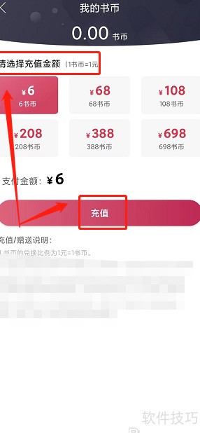 6、 打开书币页面,选择充值数额后点击充值按钮。