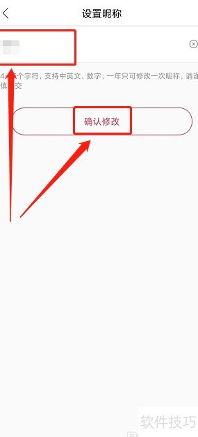10、 进入昵称设置页面,输入新名称后点击确认修改即可。