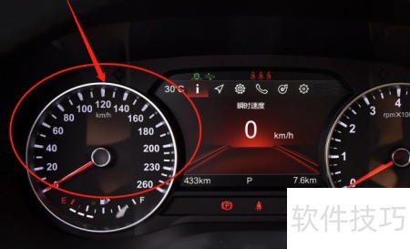 2、 最左侧仪表显示车速,量程为0至260公里每小时。