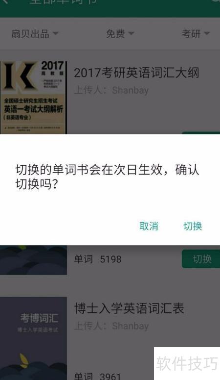 4、 选中想学的单词书,点击切换即可。