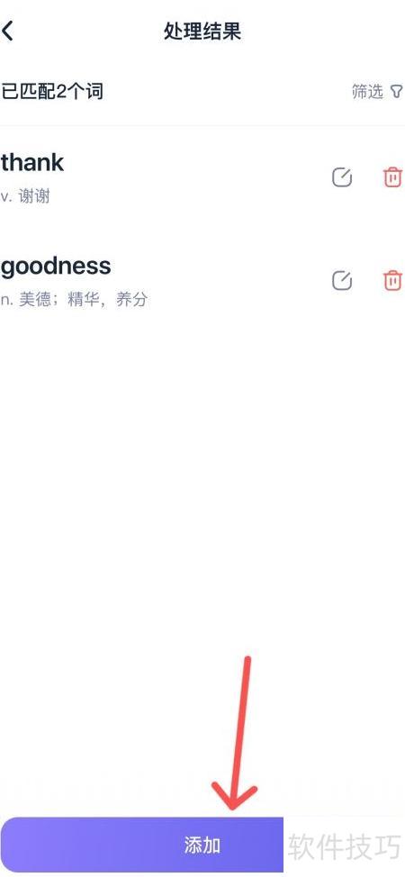 5、 在结果页面点击下方按钮,即可完成单词添加。