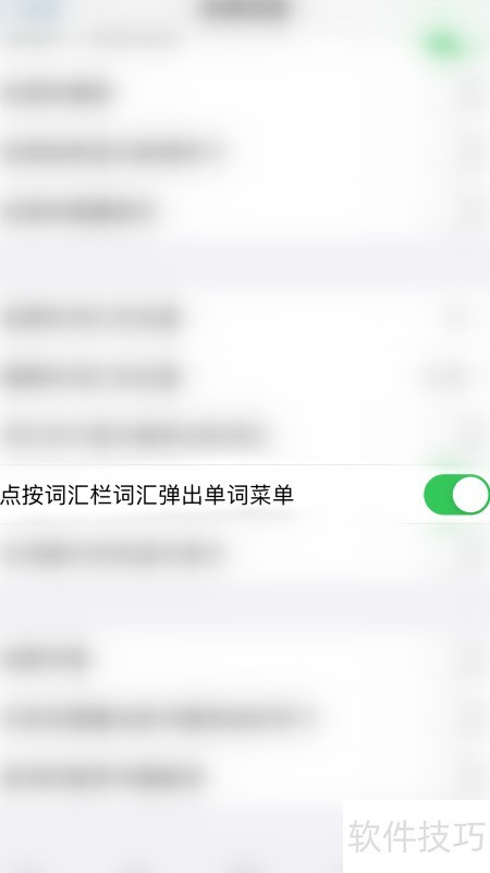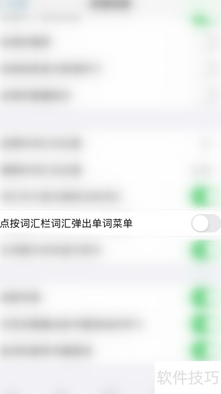 5、 点击词汇栏中的词项会弹出单词菜单,当后面圆点变灰时,表示已成功关闭该功能。