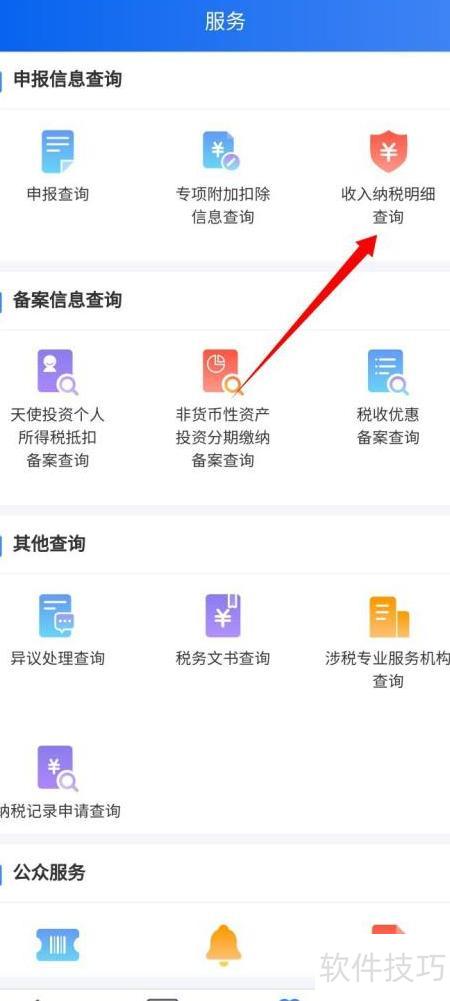 2、 进入服务页面,选择收入纳税明细查询功能。