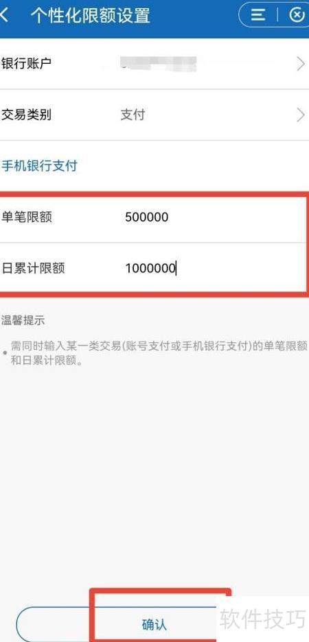 1、 在转账汇款的额度设置中,将每日限额修改为50万元。