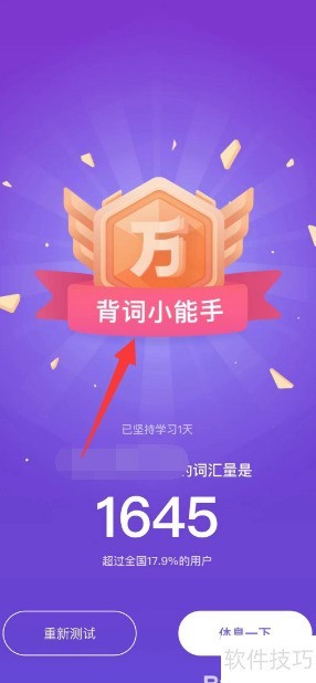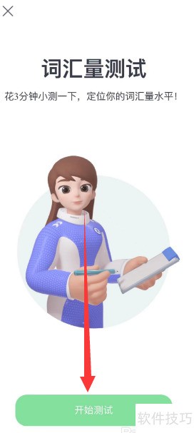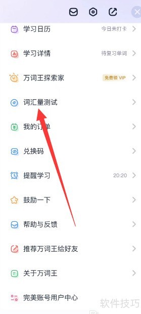1、 进入万词王个人页面,下滑找到词汇量测试入口。