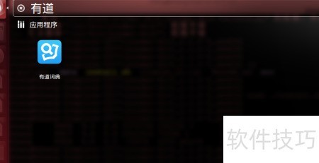7、 除了上述方式,还可通过左上角搜索框查找有道词典并打开,操作同样便捷。搜索结果中的图标可直接拖至左侧启动栏,实现快捷锁定,方便日后快速访问和使用。